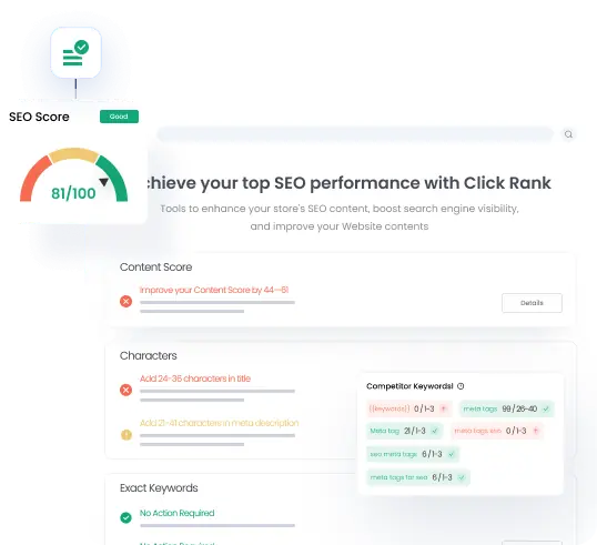 Instantly generate catchy titles and compelling meta descriptions with ClickRank's easy-to-use JavaScript snippet. Boost your site's visibility, increase clicks, and climb the rankings effortlessly!